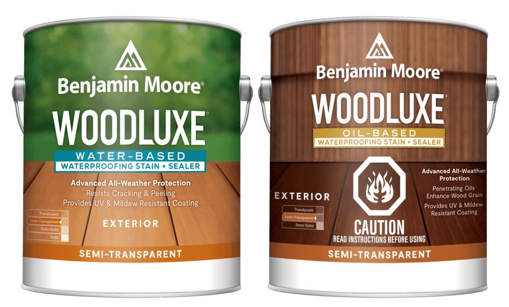 Five Woodluxe® exterior stain opacities to choose from.